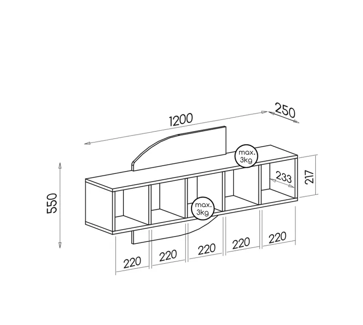 - maximální nosnost 1 přihrádky: 3 kg