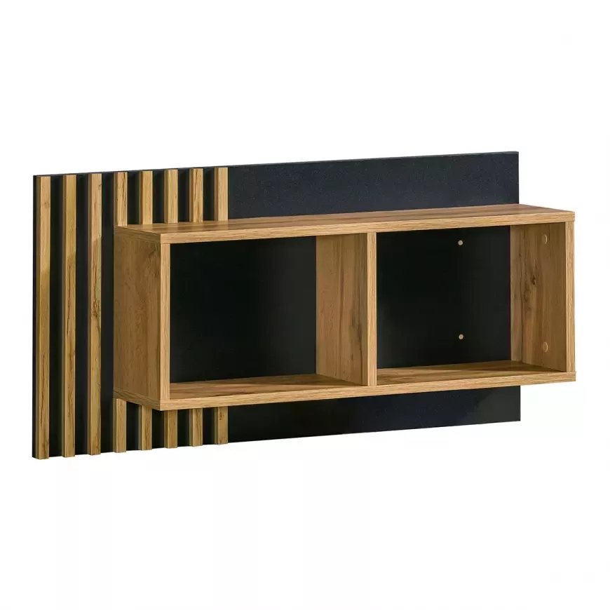 Závěsná police CATAWBA na první pohled zaujme svými designovými prvky v podobě lamel. Disponuje 2 otevřenými přihrádkami pro vystavení knih, dekorací nebo fotografií.