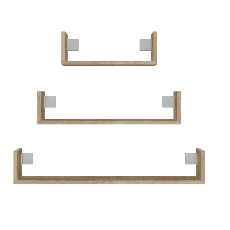 Set 3 závěsných poliček TARMO vám pomůže efektivně zaplnit prázdnou zeď. Poličky o šířce 40 cm, 60 cm a 80 cm jsou na každé straně vybaveny bočnicemi, které zpevňují konstrukci poliček a také zabraňují pádu knih či jiných předmětů.