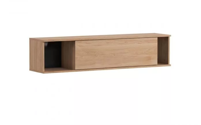 Závěsná police FULTON se vyznačuje minimalistickým designem, který podtrhuje absence klasických úchytů - ty byly nahrazeny systémem "PUSH TO OPEN". Tento inovativní systém otevírání spočívá v mírném stlačení předních částí. Jedním z prvků kolekce FULTON je prezentovaná závěsná police, která nabízí jednotlivé police na vnějších stranách. Ve střední části nábytku se nachází barová skříňka. Police je vyrobena z masivní DTD.