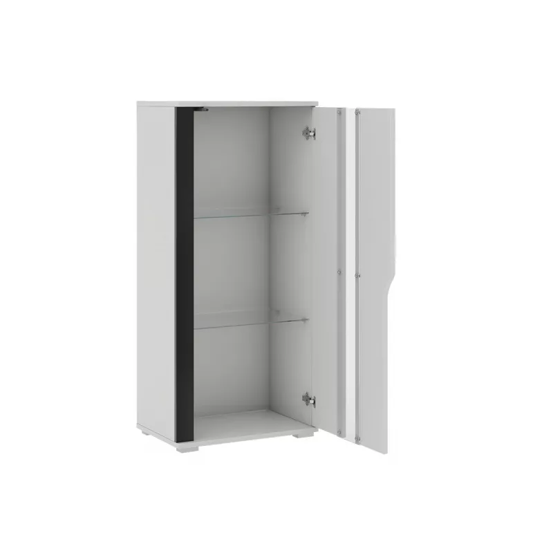 Funkční a mimořádně elegantní vitrína ERIE skvěle zapadne do moderního interiéru, kde poskytne další úložný prostor a umožní vystavit dekorativní předměty nebo důležité rodinné památky. Ozdobným detailem nábytku je vložka v kontrastní barvě, kterou si zákazník při montáži vybere sám. Na výběr je mezi vložkou v barvě zlatého dubu nebo v černé lesklé barvě. Vitrína navíc disponuje dvěma možnostmi montáže - zavěšená (levá / pravá) nebo volně stojící (levá / pravá). Skříňka nemá tradiční úchytky, lze ji otevřít pomocí systému PUSH TO OPEN.
