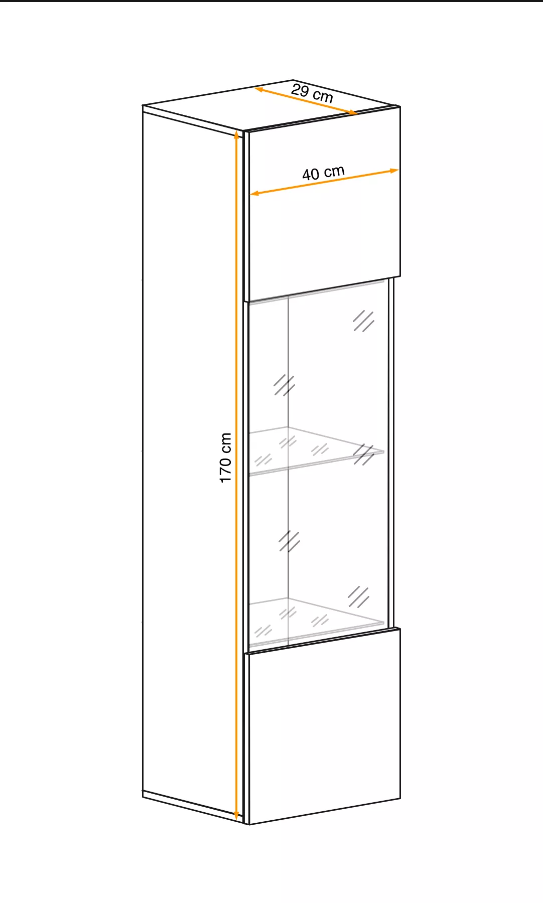 Závěsná vitrína FREYA je funkční vitrína, která se hodí do obývacího pokoje nebo jídelny. Prosklená část může sloužit k vystavení dekorací, suvenýrů nebo knih. Přední část je vyrobena ve vysoce lesklé barvě.