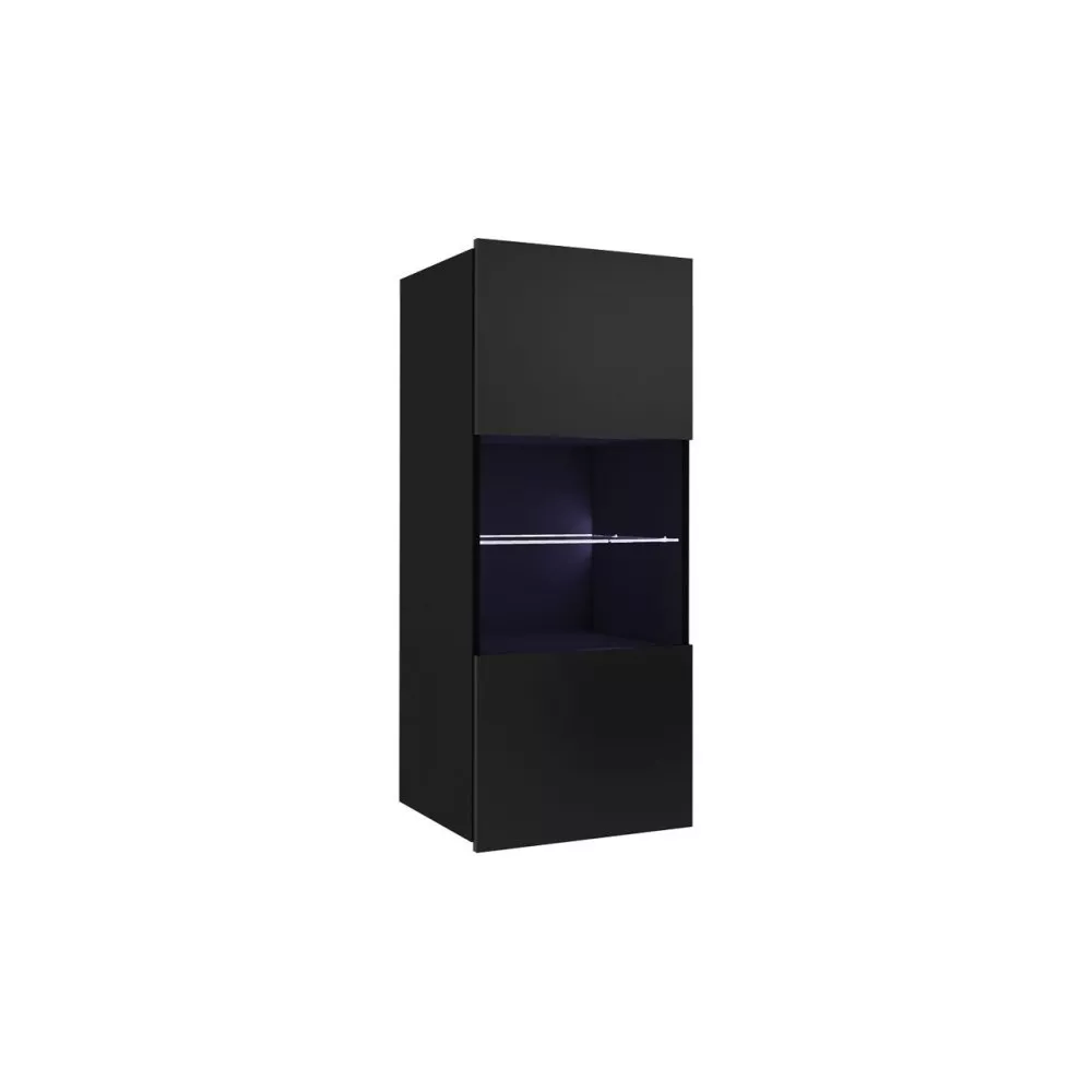 Prosklená závěsná vitrína CHEMUNG - černá / lesklá černá