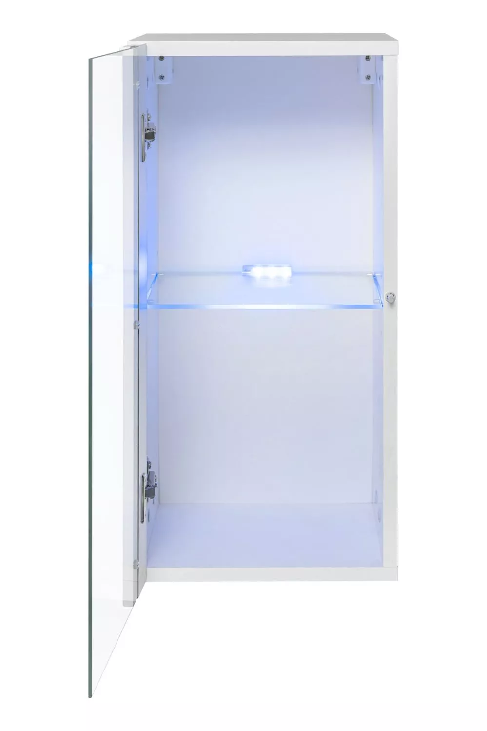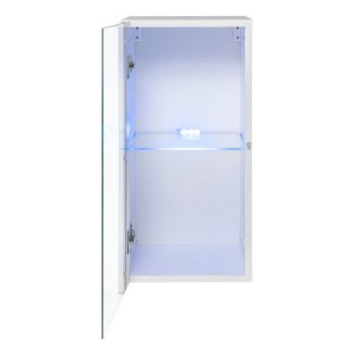 Prosklenou vitrínu na zeď Rionata lze umístit kdekoliv v prostoru. Atraktivním prvkem je vnitřní podsvícení skleněné poličky. Dvířka otevřete systémem "push to open". Pro otevření a opětovné zavření stačí slabě zatlačit na dvířka.