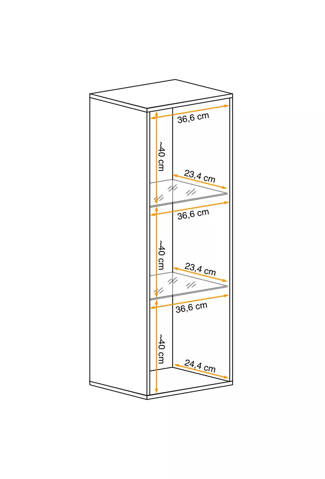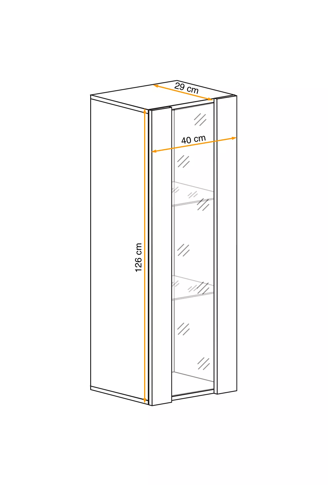 Závěsná vitrína FREYA je funkční vitrína, která se hodí do obývacího pokoje nebo jídelny. Prosklená část může sloužit k vystavení dekorací, suvenýrů nebo knih. Přední část je vyrobena ve vysoce lesklé barvě.