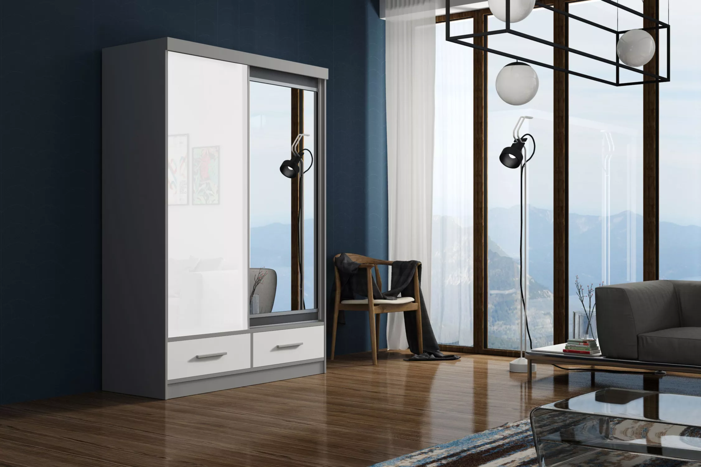 Kombinovaná šatní skříň 150/62 TUNDE - šedá / bílý lesk