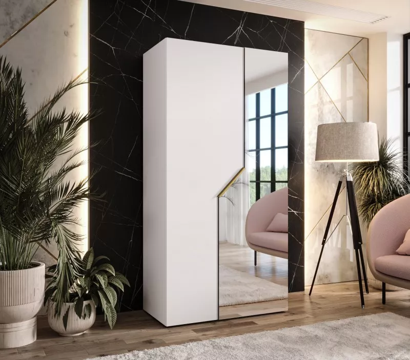 Úzká zrcadlová skříň 100 cm ELIRA 2 - bílá / zlatý úchyt