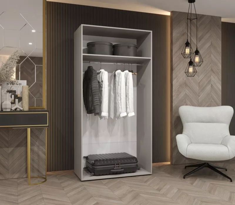 Úzká zrcadlová skříň 100 cm ELIRA 2 zaujme především svým minimalistickým provedením, díky kterému skvěle zapadne do všech stylů ložnic. Skříň disponuje zrcadlem, šatní tyčí a horní policí pro uložení bot nebo úložných boxů. Systém tichého dovírání zpříjemní každodenní používání.
