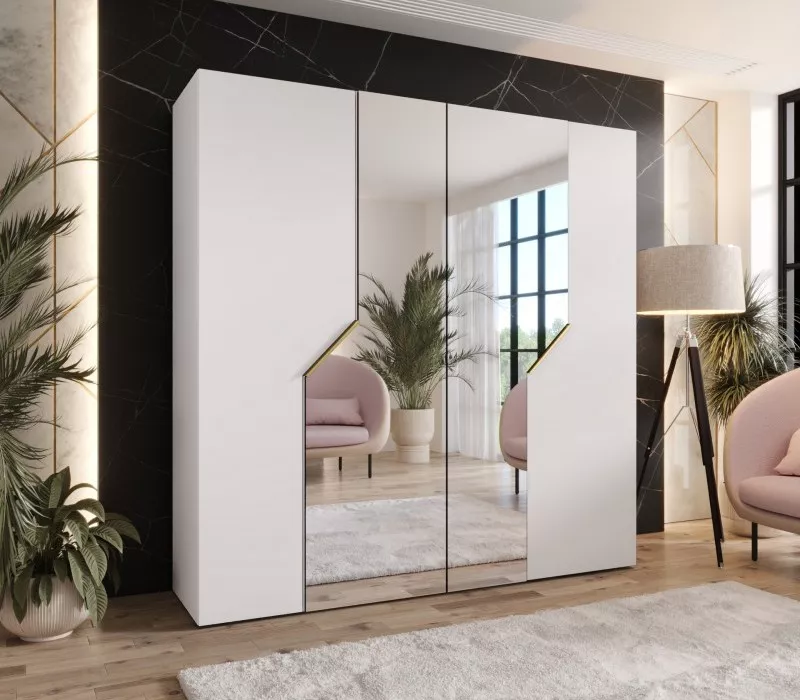 Zrcadlová šatní skříň 200 cm ELIRA 2 - bílá / zlaté úchyty