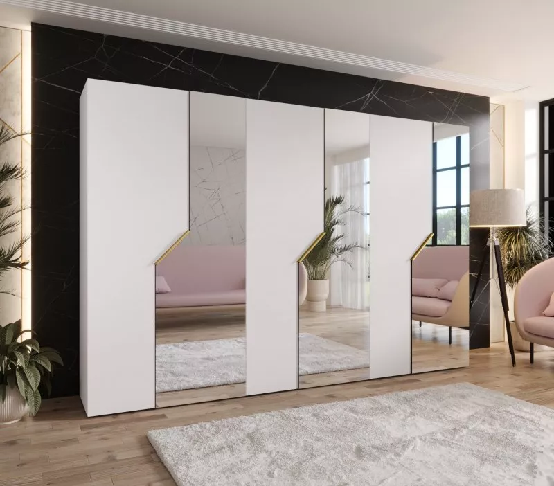 Široká zrcadlová skříň 300 cm ELIRA 2 - bílá / zlaté úchyty