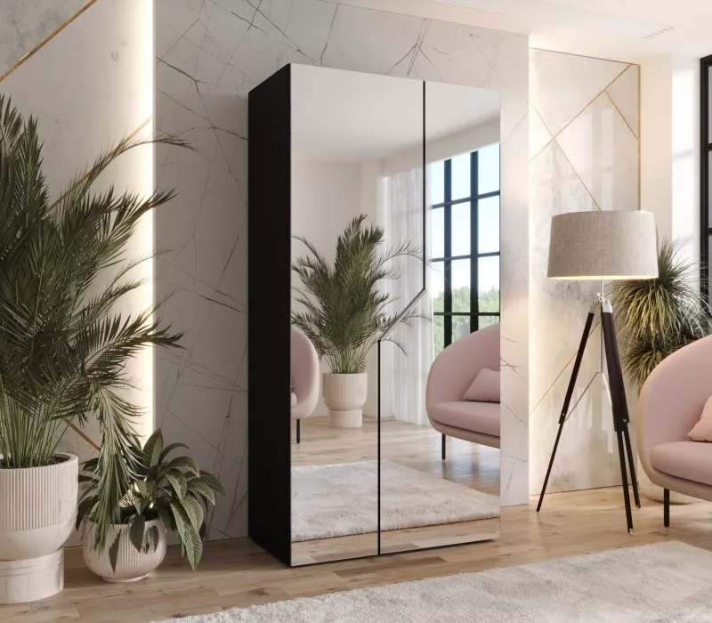 Šatní skříň 100 cm ELIRA 3 se zrcadlem zaujme především svým minimalistickým provedením, díky kterému skvěle zapadne do všech stylů ložnic. Skříň disponuje zrcadly, šatní tyčí a horní policí pro uložení bot nebo úložných boxů. Systém tichého dovírání zpříjemní každodenní používání.
