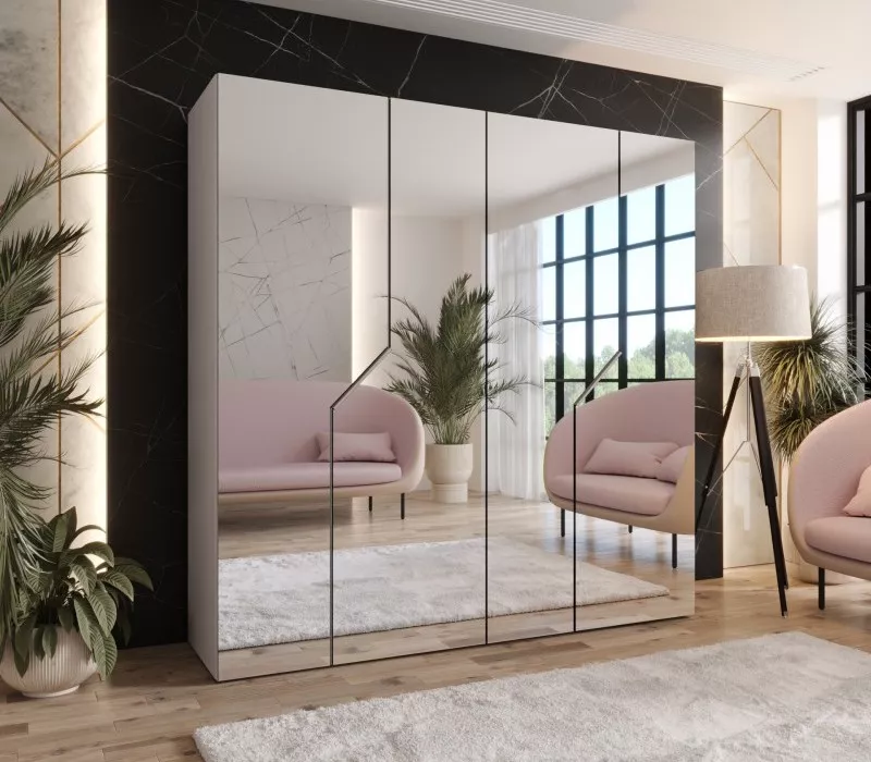 Zrcadlová šatní skříň 200 cm ELIRA 3 zaujme především svým minimalistickým provedením, díky kterému skvěle zapadne do všech stylů ložnic. Skříň disponuje zrcadly, 2 šatními tyčemi a 2 horními policemi pro uložení bot nebo úložných boxů. Systém tichého dovírání zpříjemní každodenní používání.
