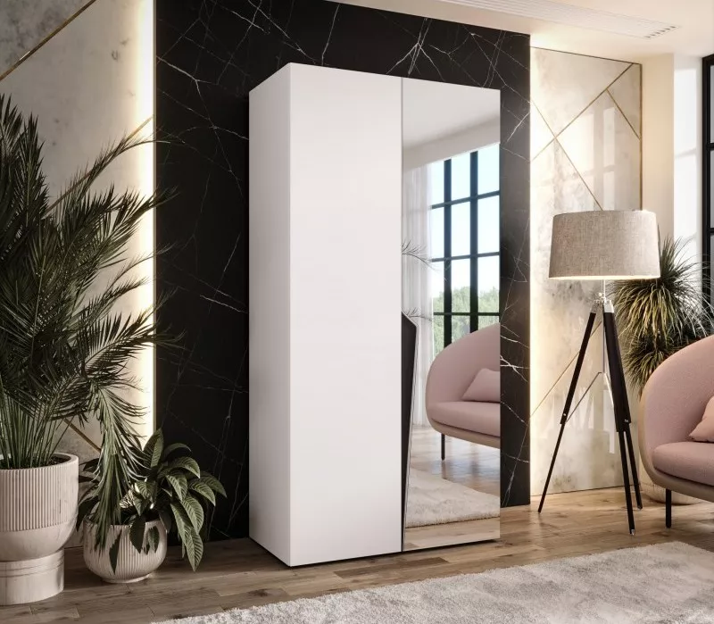 Šatní zrcadlová skříň 100 cm SORAYA 2 - bílá / černý úchyt