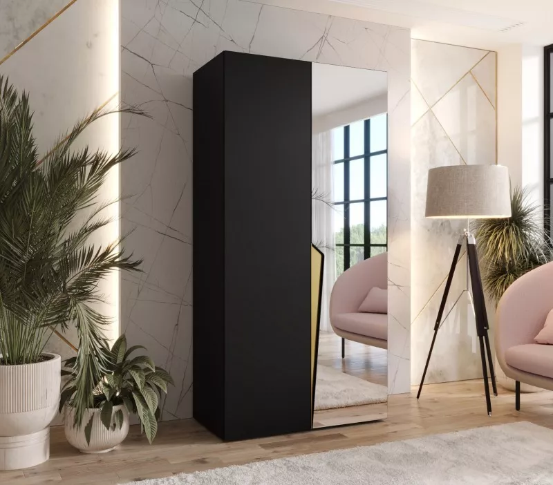 Šatní zrcadlová skříň 100 cm SORAYA 2 - černá / zlatý úchyt