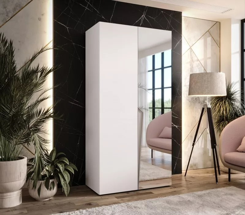 Šatní zrcadlová skříň 100 cm SORAYA 2 - bílá / kašmírový úchyt