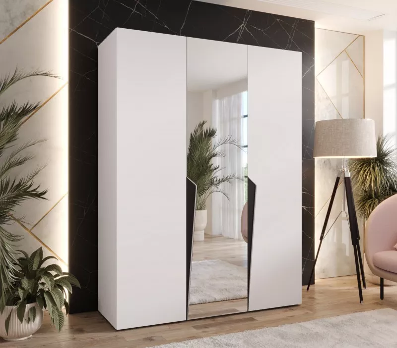 Elegantní skříň 150 cm SORAYA 2 se zrcadlem - bílá / černé úchyty