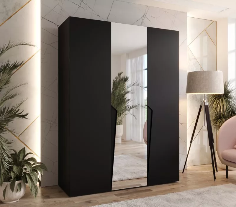 Elegantní skříň 150 cm SORAYA 2 se zrcadlem - černá / černé úchyty