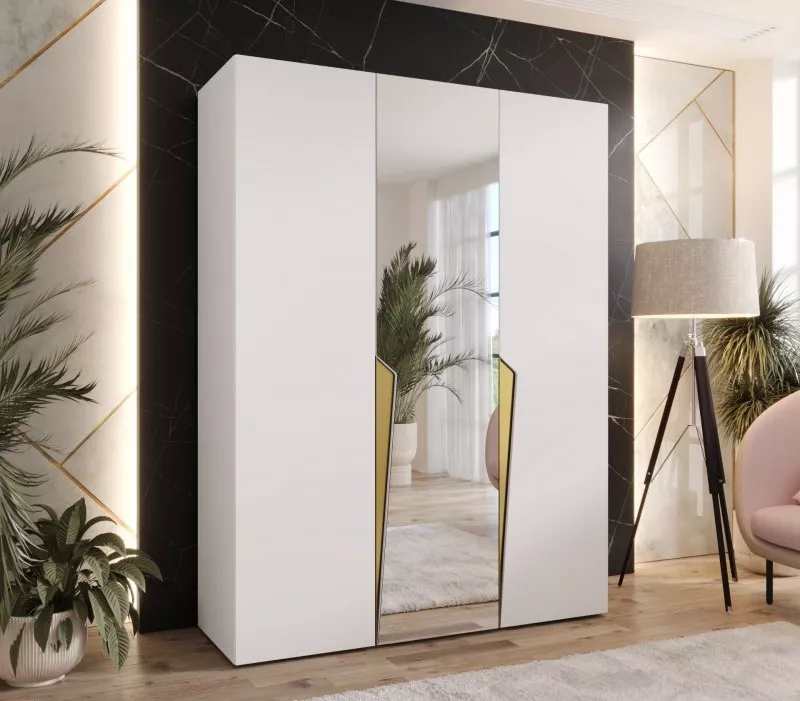 Elegantní skříň 150 cm SORAYA 2 se zrcadlem - bílá / zlaté úchyty