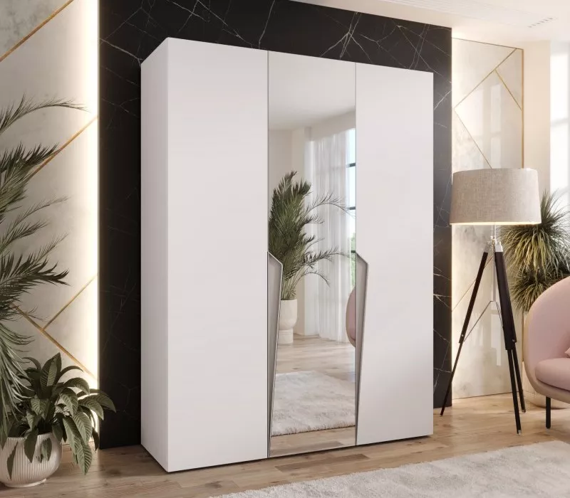 Elegantní skříň 150 cm SORAYA 2 se zrcadlem - bílá / kašmírové úchyty