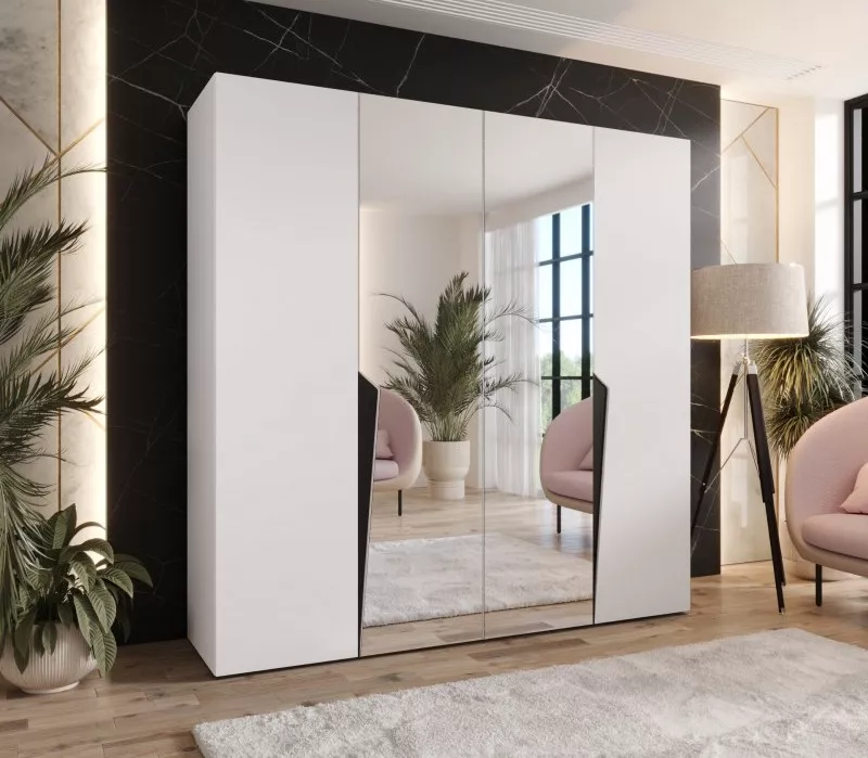 Čtyřdveřová šatní skříň 200 cm SORAYA 2 - bílá / černé úchyty