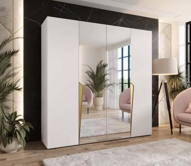 Čtyřdveřová šatní skříň 200 cm SORAYA 2 - bílá / zlaté úchyty
