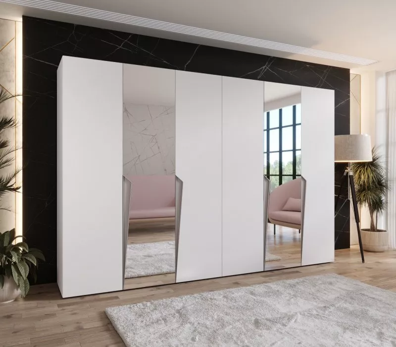 Zrcadlová šatní skříň 300 cm SORAYA 2 - bílá / kašmírové úchyty