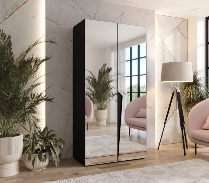 Zrcadlová šatní skříň 100 cm SORAYA 3 - černá / černý úchyt