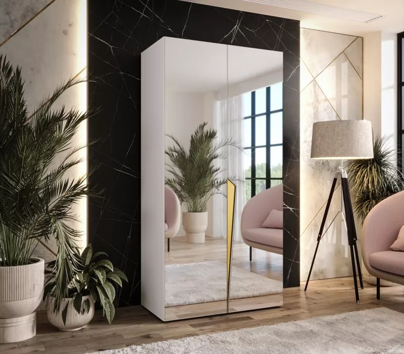 Zrcadlová šatní skříň 100 cm SORAYA 3 - bílá / zlatý úchyt