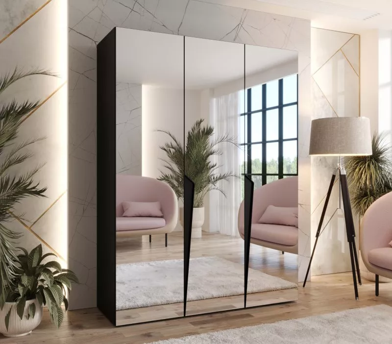 Elegantní zrcadlová skříň 150 cm SORAYA 3 - černá / černé úchyty