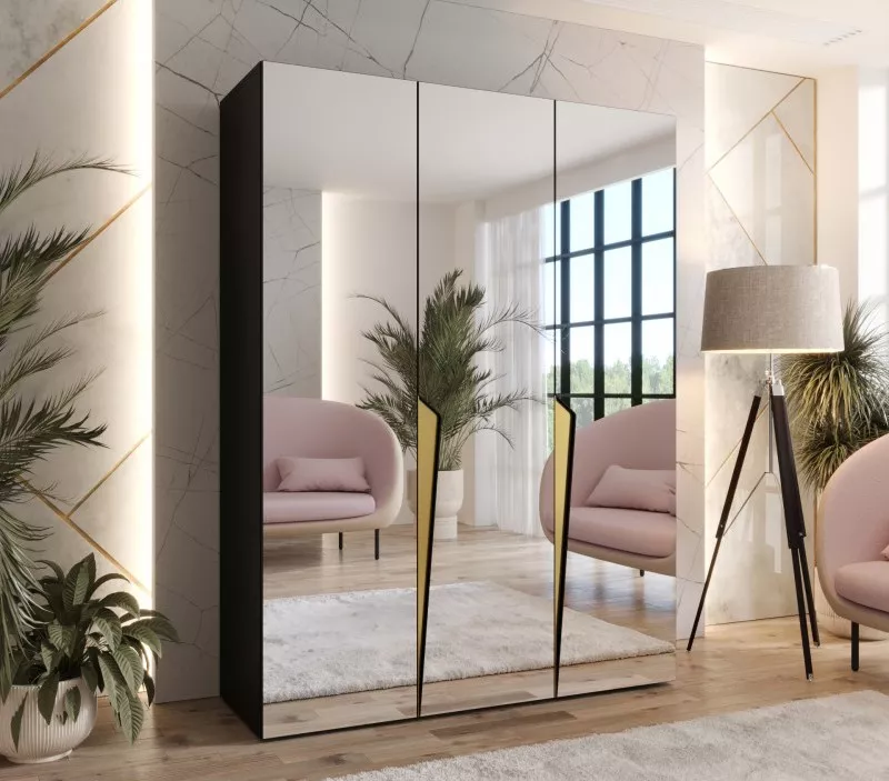 Elegantní zrcadlová skříň 150 cm SORAYA 3 - černá / zlaté úchyty