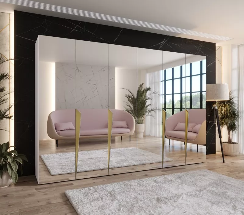 Šatní zrcadlová skříň 300 cm SORAYA 3 - bílá / zlaté úchyty