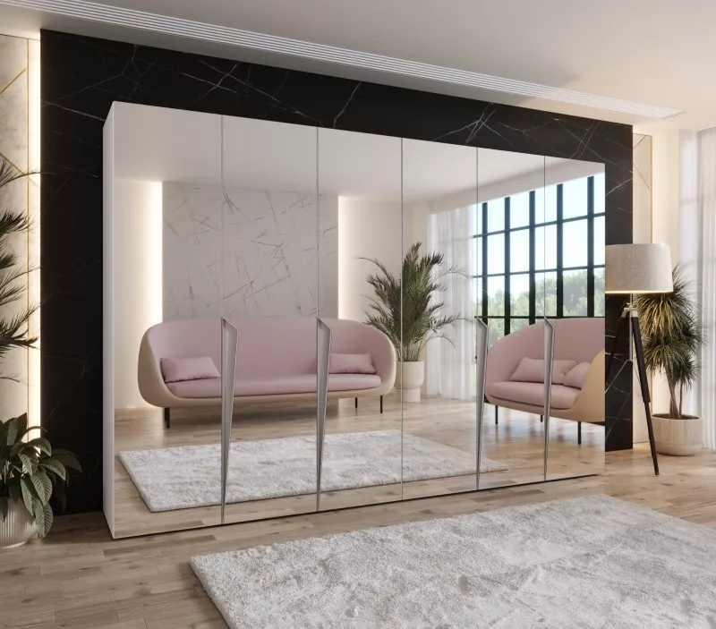 Šatní zrcadlová skříň 300 cm SORAYA 3 - bílá / kašmírové úchyty
