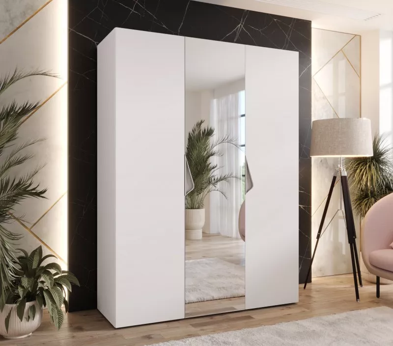 Třídveřová šatní skříň 150 cm AMARIS 2 jistě upoutá pozornost všech nadšenců minimalistického stylu. Vnitřní uspořádání v podobě šatních tyčí a horních polic vám umožní zavěsit a uložit vše potřebné. Skříň je vybavená systémem tichého dovírání, což zpříjemní každodenní používání.