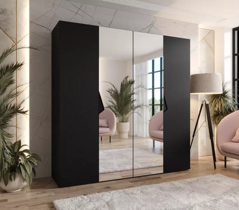 Čtyřdveřová zrcadlová skříň 200 cm AMARIS 2 - černá / černé úchyty