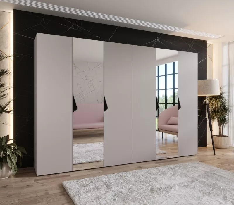 Elegantní zrcadlová skříň 300 cm AMARIS 2 - kašmír / černé úchyty
