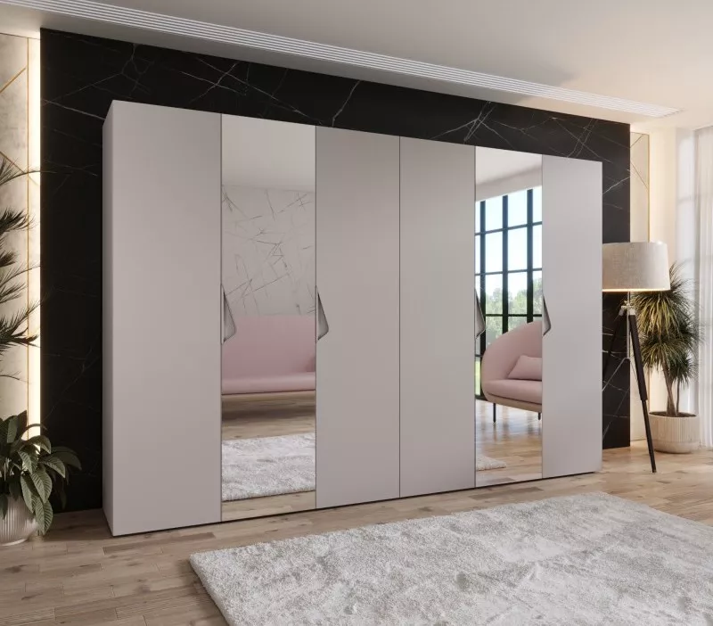Elegantní zrcadlová skříň 300 cm AMARIS 2 - kašmír / kašmírové úchyty