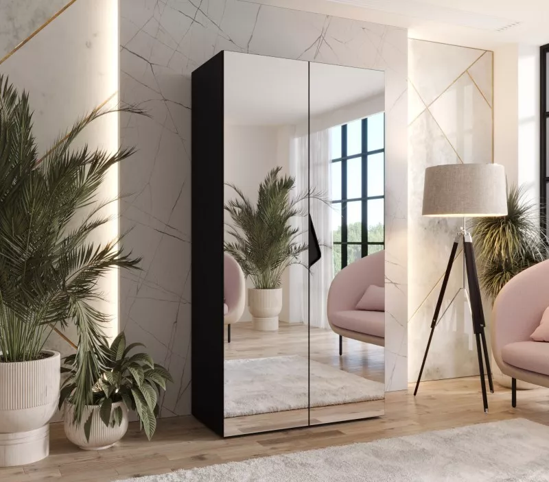 Úzká zrcadlová skříň 100 cm AMARIS 3 jistě upoutá pozornost všech nadšenců minimalistického stylu. Vnitřní uspořádání v podobě šatní tyče a horní police vám umožní zavěsit a uložit vše potřebné. Skříň je vybavená systémem tichého dovírání, což zpříjemní každodenní používání.